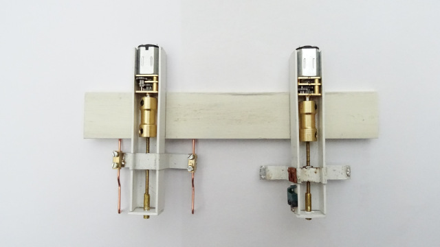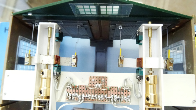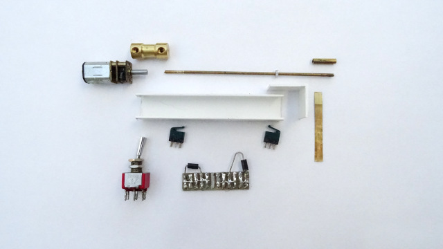 De bedrading van de motoren en de microswitches voor de eindafschakeling zitten gesoldeerd op een printplaatje.