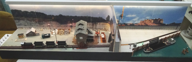 De laadbakken worden door de stort gevuld met stenen en daarna getransporteerd naar de boot.